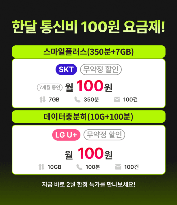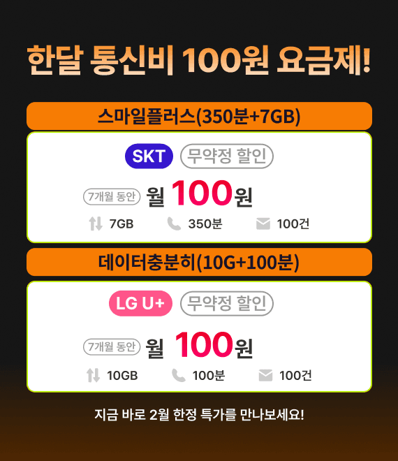 이달의 알뜰폰 요금제 초특가 프로모션